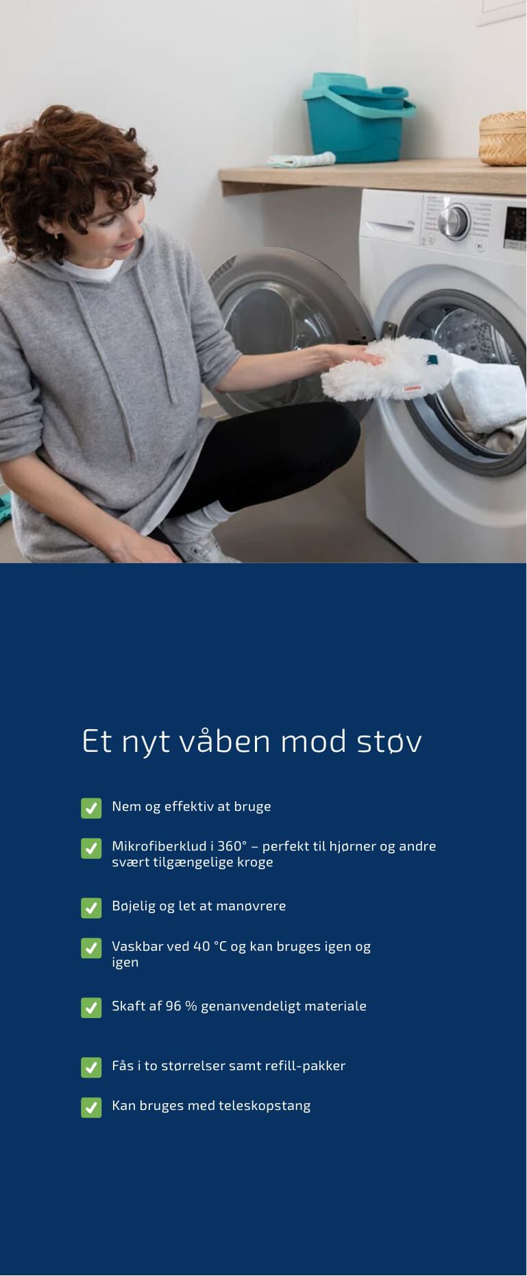 Superduster tager kampen op mod støv, så du kan klare hjemmets rengøringsopgaver både hurtigere og mere effektivt. Kombinér den med den smarte teleskopstang – perfekt til alt det, der ellers kan være svært at nå.